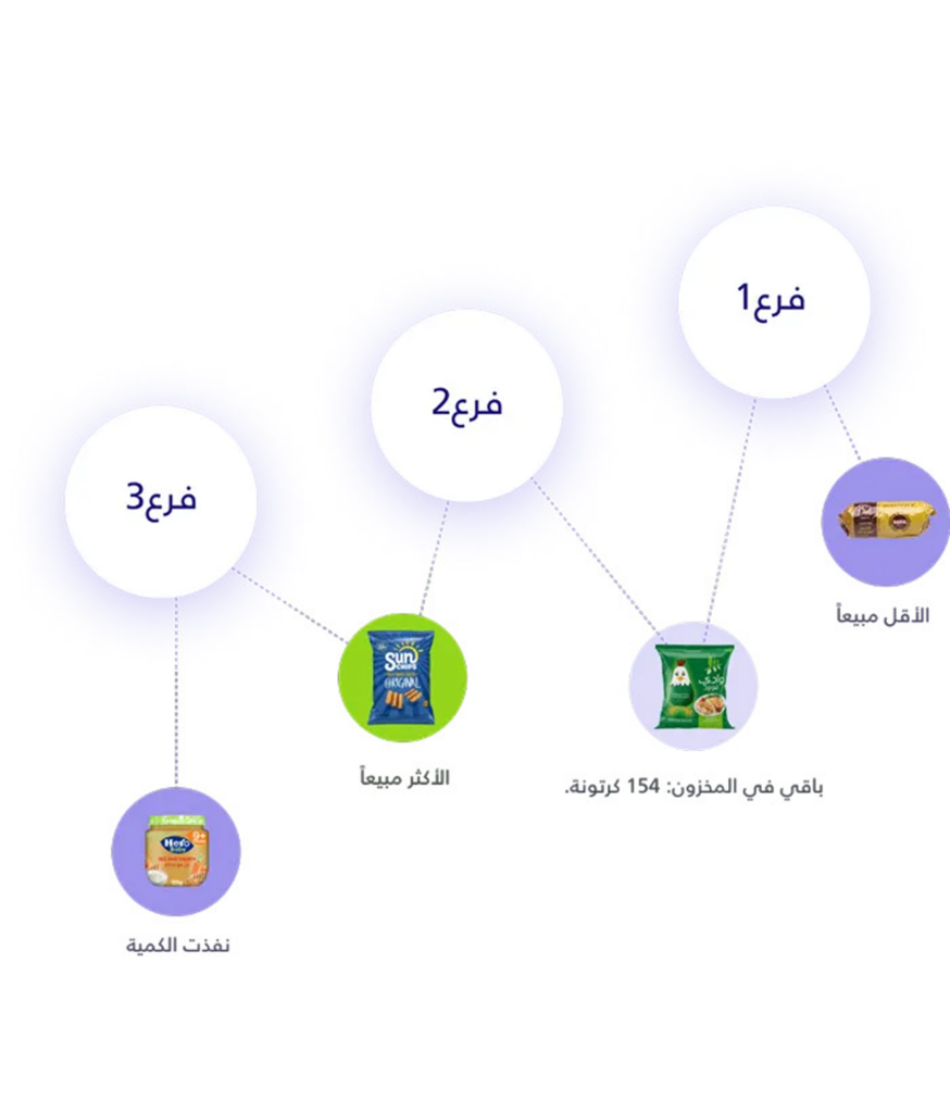 متابعة لحظية لحالة المخزون في كل فرع: عدد المنتجات، أكثر / أقل مبيعًا حسب الفروع